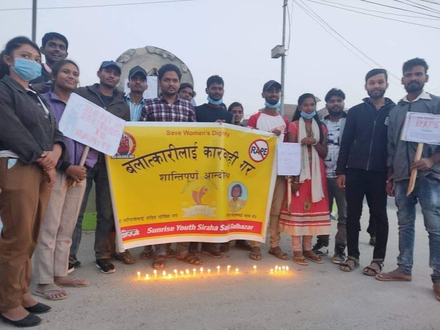 सिरहा ।सिरहाको गोलबजार न. पा मा बालिका गुलफसा र संजय न्योपानेको न्यायको लागि बिरोध प्रदर्शन गरेका छ्न। महोत्तरीको बर्दिबास नगरपालिका १४ शुभम् बस्तीकी ६ वर्षीय बालिका गुलाब शाह खातुन बलात्कार पछि हत्यामा संलग्नलाई कार्वाहीको माँग गर्दै शनिवार सनराइज युथ सिरहा संजाल को आयोजनामा युवाहरुले विरोध प्रर्दशन गरेका हुन् । सयौंको संख्यामा उपस्थित किशोर किशोरी तथा युवाहरुको जुलुशले बलात्कारीलाई कार्वहीको माग गर्दै विभिन्न नारा तथा प्रतिकात्मक फोटोहरु सहित जुलुस निकाल्दै बजार परिक्रमा गरी पुर्व पश्चिम राजमार्ग को गोलचकर चौकमा कोणसभा गरेका थिए।