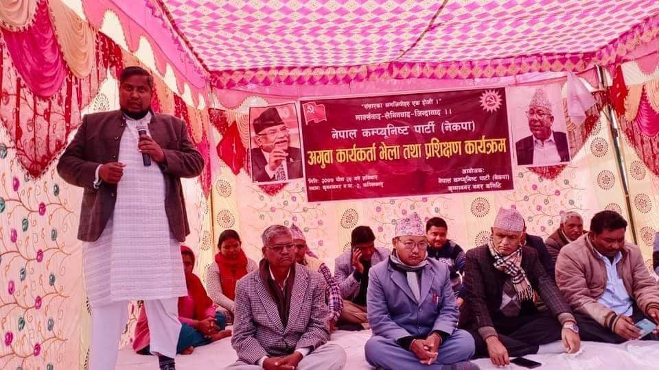 कृष्णनगर : पुस २५ कपिलवस्तु जिल्लाको कृष्णनगर नगरपालिका वडा नं २ कृष्णनगरमा नेपाल कम्युनिस्ट पार्टी (नेकपा) को अगुवा कार्यकर्ता भेला तथा प्रशिक्षण कार्यक्रम आज सम्पन्न भएको छ। नेपाल कम्युनिस्ट पार्टी (नेकपा) कृष्णनगर नगरकमिटीको आयोजना नेकपा कृष्णनगर नगर कमीटी अध्यक्ष जावेद आलम खां को अध्यक्षता ,नेपाल कम्यूनिष्ट पार्टी (नेकपा) का केन्द्रिय सदस्य गिरिधारीलाल न्यौपानेको प्रमुख आतिथ्य रह्यो भने विशिष्ट अतिथिमा लुम्बिनी प्रदेश सचिवालय सदस्य रुद्रलाल बन्जाडे, प्रदेश कमिटी सदस्य बालकराम बुढा, लुम्बिनी प्रदेश सभा सदस्य बिष्णु पन्थी र अतिथिमा लुम्बिनी प्रदेश मदरसा बोर्ड उपाध्यक्ष मौलाना मशहूद खां नेपाली, नेकपा महाराजगंज नगर कमीटी अध्यक्ष विजय जयसवाल लगायत अन्य रहनु भयो ।