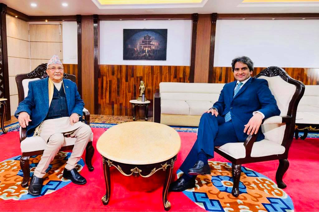 काठमाडौँ । भारतीय टेलिभिजन च्यानल जी न्युजका प्रधानसम्पादक सुधीर चौधरीले प्रधानमन्त्री केपी शर्मा ओलीको अन्तर्वार्ता लिएका छन् । सुधीरले आइतबार बालुवाटार पुगेर ओलीको अन्तर्वार्ता लिएका हुन् । अन्तर्वार्ता आज बेलुका ९ बजे प्रसारण हुनेछ ।