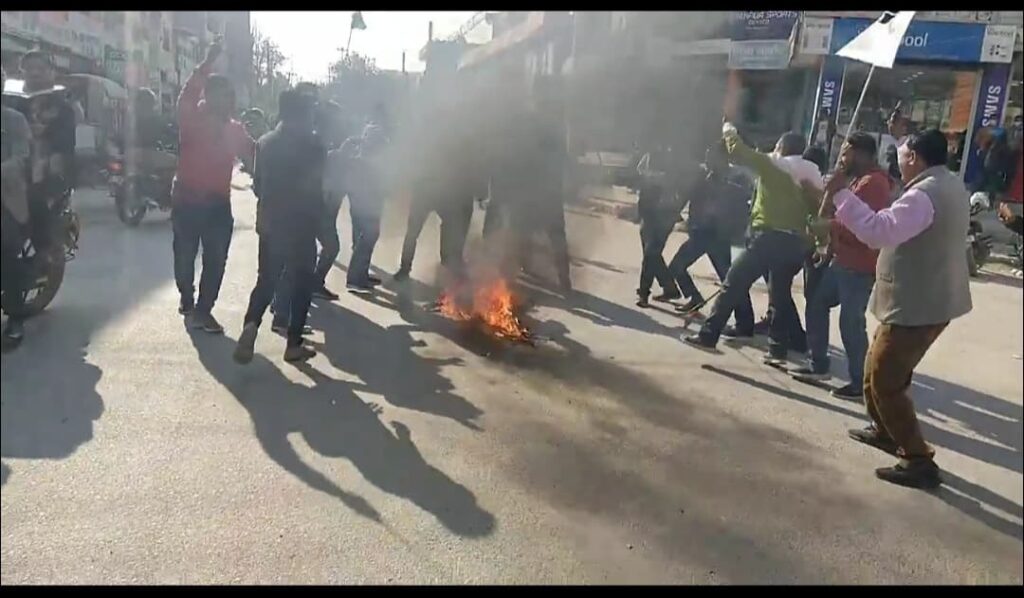 संसद विघटन र असंवैधानिक नियुक्ति विरूद्ध प्रदर्शन गर्दै जसपाका जिल्ला नागेन्द्र यादव एवं विद्यार्थी युनियनका केन्द्रिय सदस्य लगायत केन्द्रीय सहितको नेताकार्यकर्ताले प्रधानमन्त्री ओलीको पुत्ला जलाएका हुन् ।
