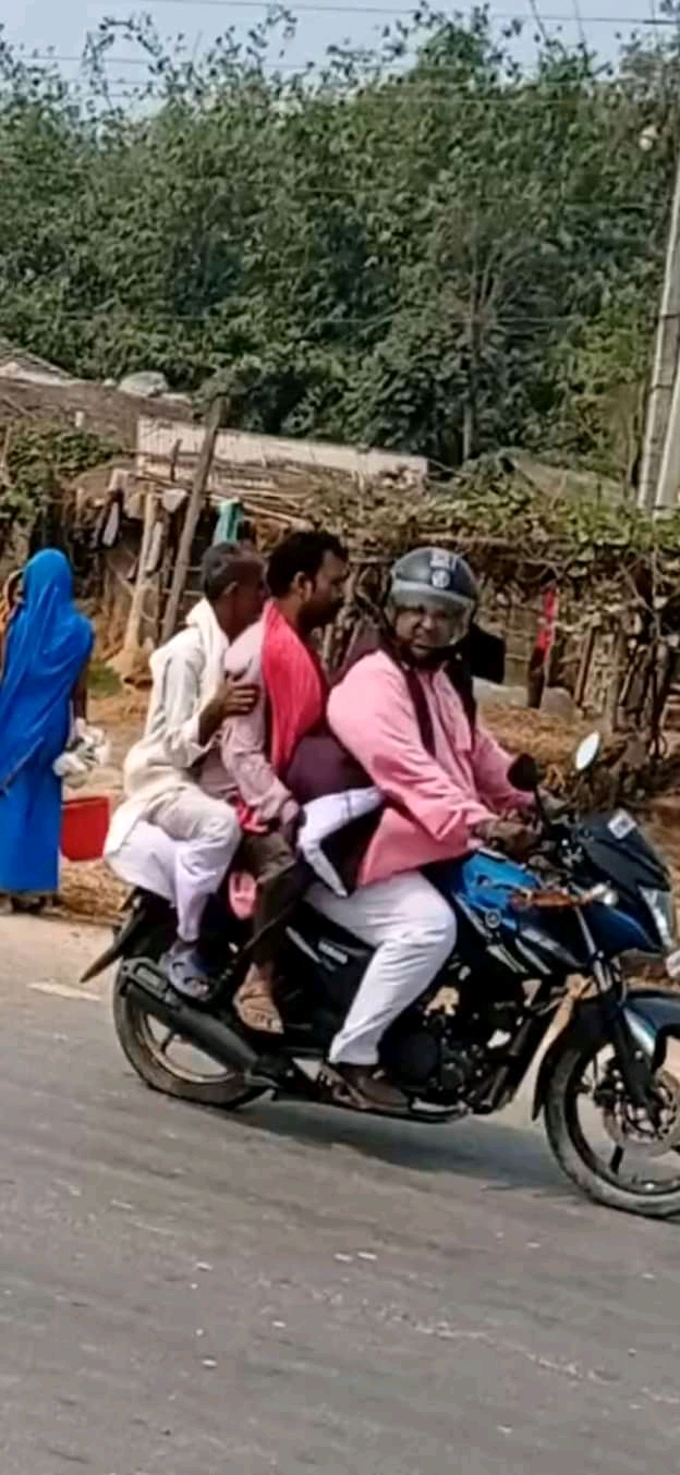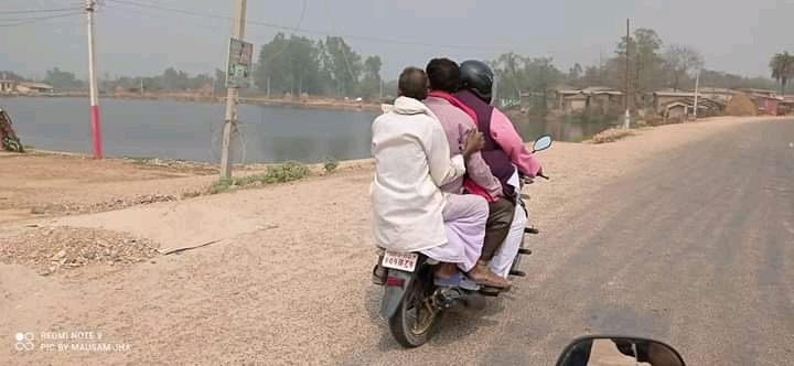 पिपरा देखि जनकपुर जाने बाटोमा अध्यक्ष अरुण ठाकुर माेटरसाईकलमा तीन जना सवार भएकाे देखिएकाे छ ।