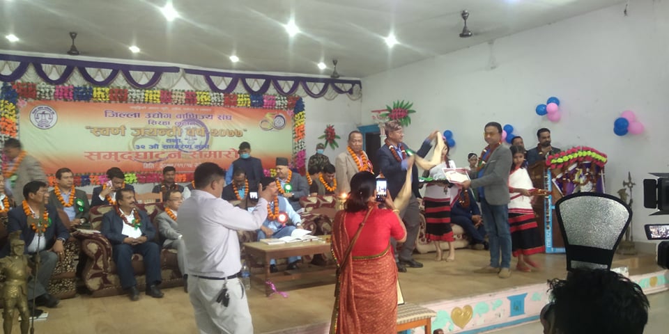 जयनाथ यादव / लहान : “समृद्धिको आधार कृषि उधोग पर्यटन व्यापार ” मुल नाराका साथ जिल्ला उधोग वाणिज्य संघ सिरहा ,लहानले ” स्वर्ण जयन्ती बर्ष २०७७ तथा ३२ औं साधारण सभा ५० बर्ष समुद्धघाटन समारोह भव्य रुपमा कार्यक्रम सफल पारेको छ ।
