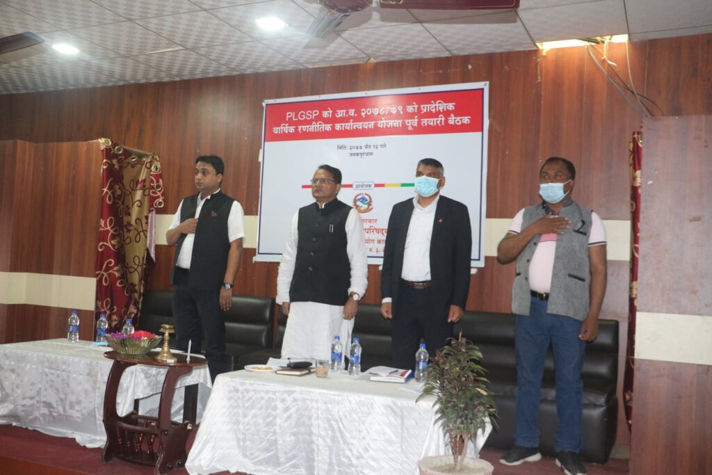 उहाँले प्रदेश तथा स्थानीय शासन सहयोग कार्यक्रम प्रदेश सरकारले प्राथमिकतामा राखेको कार्यक्रमहरुलाई कार्यान्वयन गराउने तर्फ उन्मुख हुनु पर्नेमा त्यसको आभाव देखिएको समेत उल्लेख गर्नु भयो । कार्यक्रममा प्रदेश सरकारका सचिवहरु, प्रदेश तथा स्थानीय शासन सहयोग कार्यक्रम (पिएलजीएसपी)का साझेदार संस्थाका प्रतिनिधिहरु समेतको उपस्थिति रहेको थियो ।