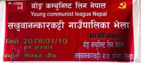 सिरहाको सखुवान्नकारकट्टी गाउँपालिका तीनकुने चौकमा हिजो शुक्रबार योङ्ग कम्युनिस्ट लिग नेपाल द्वारा भेला भई विशेष छलफल सम्पन्न गरेको हो ।