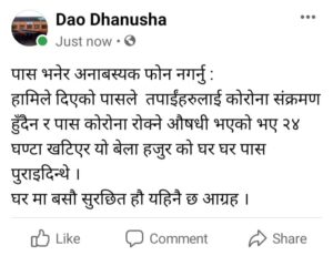 सूचनामा भनिएको छ, ‘हामीले दिएको पासले तपाईंहरुलाई कोरोना संक्रमण हुँदैन र पास कोरोना रोक्ने औषधी भएको भए २४ घण्टा खटिएर यो बेला हजुरको घर–घर पास पुराइदिन्थे ।