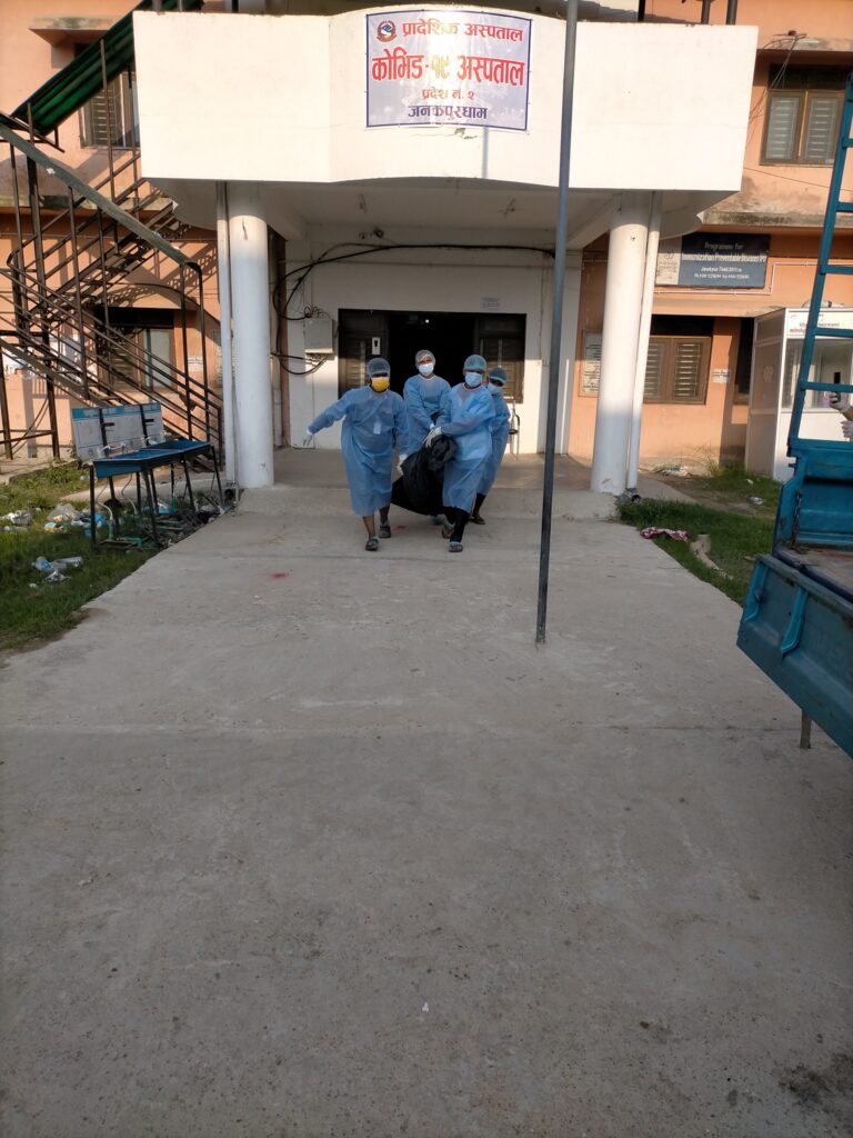 जनकपुरधाम : जनकपुर  प्रादेशिक अस्पतालको कोभिड वार्डमा धनुषाको लक्षमिनिया गाउँपालिका एक जनाको मृत्यु भयो सव ब्यबस्थापनका निमित्त निज मृतकको  छोरा सरोज ठाकुर शर्मा जिल्ला प्रसासन कार्यालय पुग्यो कार्यालय बन्द थियो  धेरै प्रयास गर्दा पनि सम्पर्क हुन सकेन, अन्तयमा  निज को छोरा र प्रादेशिक अस्पताल का एक जना सुरक्षाकर्मिले यस टिमलाइ खबर गरयो ।