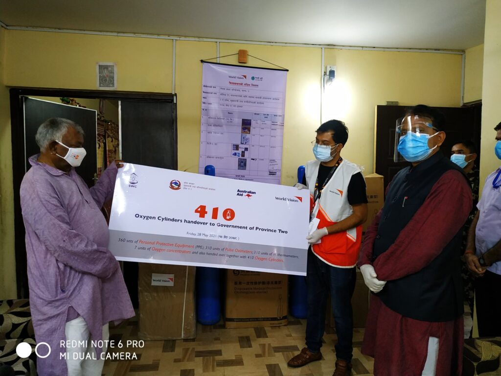 जनकपुरधाम, जेठ १४ । वल्र्ड भिजन नेपाल नामक गैर सरकारी संस्थाले कोरोना महामारी संग जुध्न प्रदेश सरकारलाई सय थान अक्सीजन सिलिण्डर सहितको सामग्री सहयोग गरेको छ ।