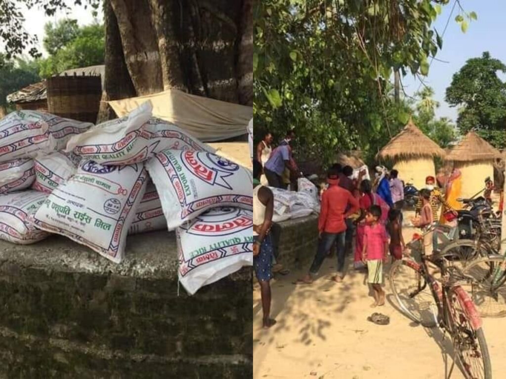 बिरगंज कपडा बैंक का संयोजक बृजेश्वर चौधरी को नेतृत्व मा पर्सा जिल्लाको जगरनाथपुर गा.पा.वडा न. ३ खेखरिया टोल मा अति बिपन्न असहायहरु बिच १५ किलो को दरले ३१ घर परिवार लाइ कूल ४ क्विन्टल ६५ किलो चामल खाघान्न सामग्री एवम २५० पीस मास्क पनि बितरण गरेको छ ।