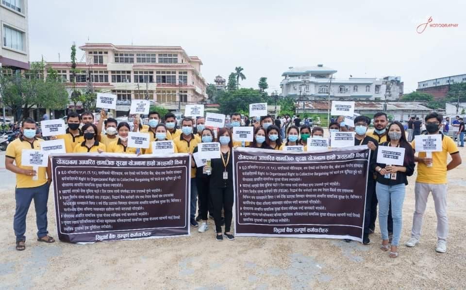 सामाजिक सुरक्षा कोषमा आफूहरुलाई जबरजस्ती आवद्ध गरी खाइपाइ आएको सेवासुविधा समेत कटौती हुने भन्दै यहाँ रहेका वाणिज्य बैंकका कर्मचारी आन्दोलित भएका हुन् ।