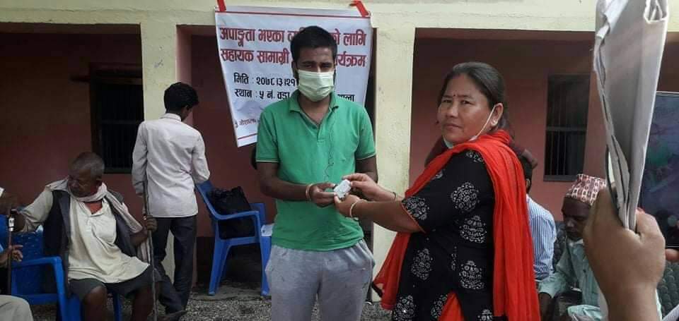 अपाङ्गता भएका व्यक्तिहरुलाई यस्ता सामग्री अपरिहार्य हुने भएकोले नगरपालिकाले सो सामग्री वितरण गरिएको बताउनु भएको छ ।