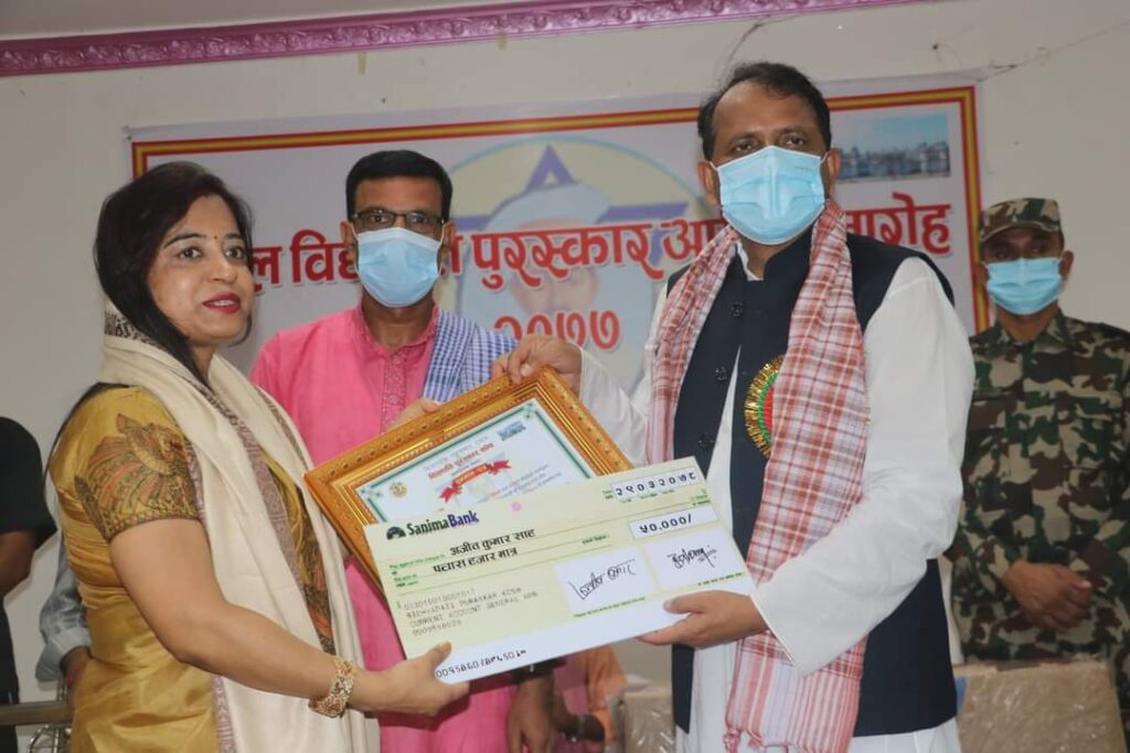मुख्यमन्त्री राउतले उहाँहरुलाई नगदसहित प्रमाणपत्रले पुरस्कृत गर्नुभएको थियो । पुरस्कार ग्रहण गर्दै पूर्व राष्ट्रियसभा सदस्य वृषेशचन्द्र लालले पुरस्कार स्वरुप प्राप्त राशि मैथिली भाषा, साहित्यकै लागि खर्चिने घोषणा गर्नुभएको थियो ।