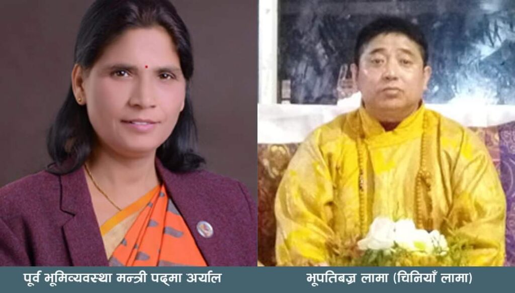 तर गुठी संस्थान अन्तर्गतको घ्याङ गुठीमा ३ वर्ष अघि तत्कालीन भूमि व्यवस्था, सहकारी तथा गरिबी निवारण मन्त्री पद्मा अर्यालले विवादित भूपतिबज्र लामालाई चिनियाँ लामा नियुक्ति गरेकी थिइन । जुन नियुक्तिको बौद्धनाथ क्षेत्र विकास समिति, स्थानीय संघसंस्था, तामाङ कल्याण गुठीलगायत सम्पूर्ण बौद्धबासीले विरोध गरेका थिए ।