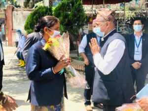 पुर्ब मन्त्री ज्वालाकुमारी साहलाई एक कार्यक्रमको बीच फूलमाला सहित विदाई गरेका छन् ।