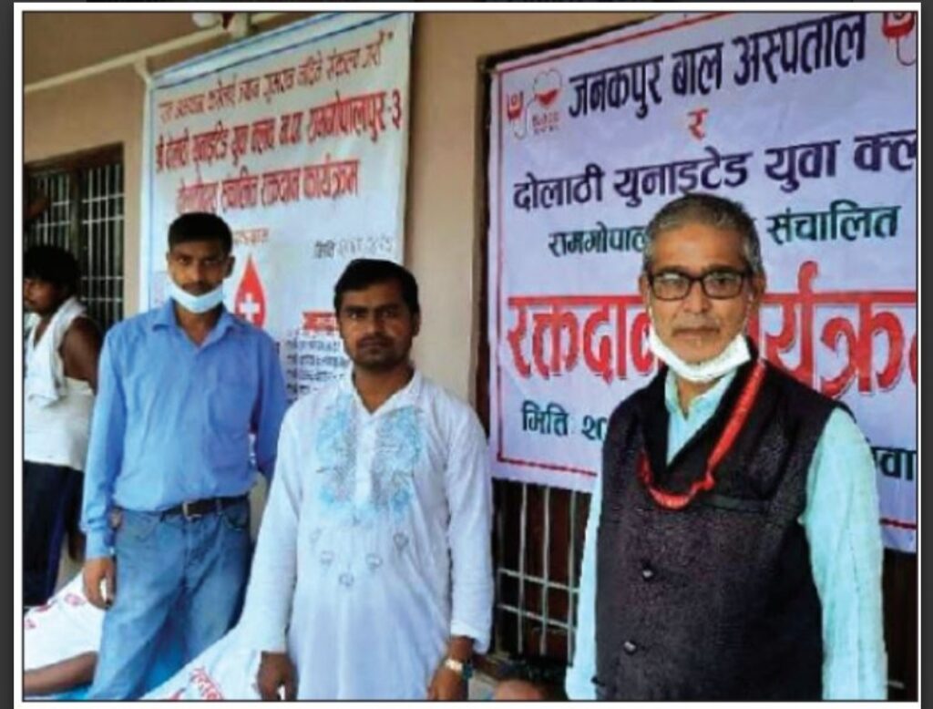 जनकपुरधाम । कोरोना महामारीको बेला जताततै रगतको अभाव भइरहेको बेला जनकपुर बाल अस्पतालले महोत्तरीको रामगोपालपुरमा शनिबार रक्तदान कार्यक्रम गरेको छ ।