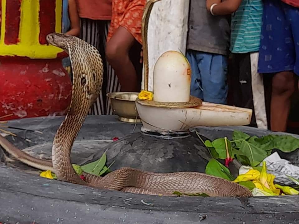 सर्पको उद्धार गर्ने प्रयास भइरहेको छ । गर्मीमा सर्प बाहिर निस्किने गर्छ । तर आज पहिलो सोमबारी भएकाले भगवान शिवको रुपमा नाग दर्शन दिएको स्थानीयले  बताए  ।