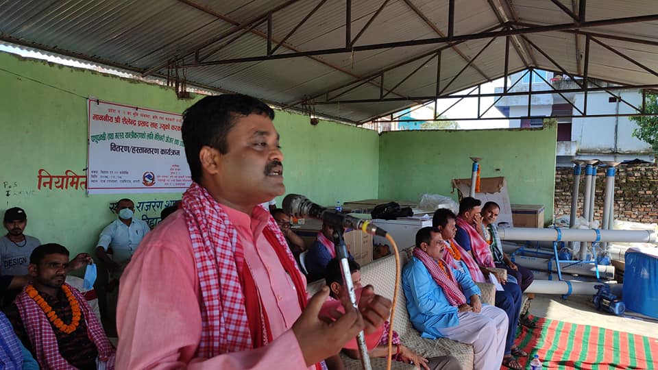सो कार्यक्रममा १०७ जना कृषकलाई मन्त्री साहले पानी तान्ने पम्प, पानीतान्ने मोटर, ईलेकिट्र्क च्यापटर, एरिएटर, डिफृज, मिनिलिटर, सवर्मासिवल पम्प, अटोमेटिक फिडिङ्ग मेसिन, चिलिङ्ग भ्याट लगायतका आधुनिक कृषि उपकरणहरु हस्तान्तरण गरे ।मधेशलाइभ वाट