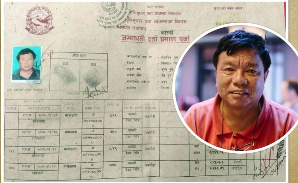 त्यति बेला त्यो जग्गा पदम भाईको नाममा किनेको थियौं । तर पदम भाई अमेरिकामा बसोबास गरेकोले केहि महिना अगाढी सो जग्गा मेरो नाममा नाम सारी गरिएको छ ।