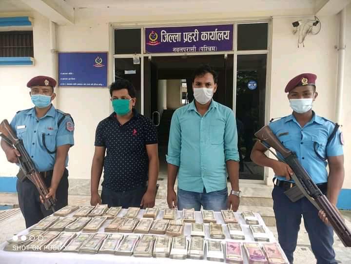 नवलपरासी :  जिल्ला प्रहरी कार्यालय पश्चिम नवलपरासीले आज सोमबार १८ लाख ५० हजार नेपाली रुपैयाँ र ९ लाख भारतिय रुपैया सहित २ जनालाई पक्राउ गरेको छ । प्रहरीको अनुसार बर्दघाट नगरपालिका वडा नम्बर १२ भटौलिया स्थित परासी – नारायण चोक हुलाकी सडक खण्डमा लु १६ प ३७२९ नम्बरको मोटरसाईकललाई शंका लागेर रोकेर चेकजाँच गर्ने क्रममा उक्त मोटरसाईकलमा सवार २ जना पक्राउ परेका हुन ।