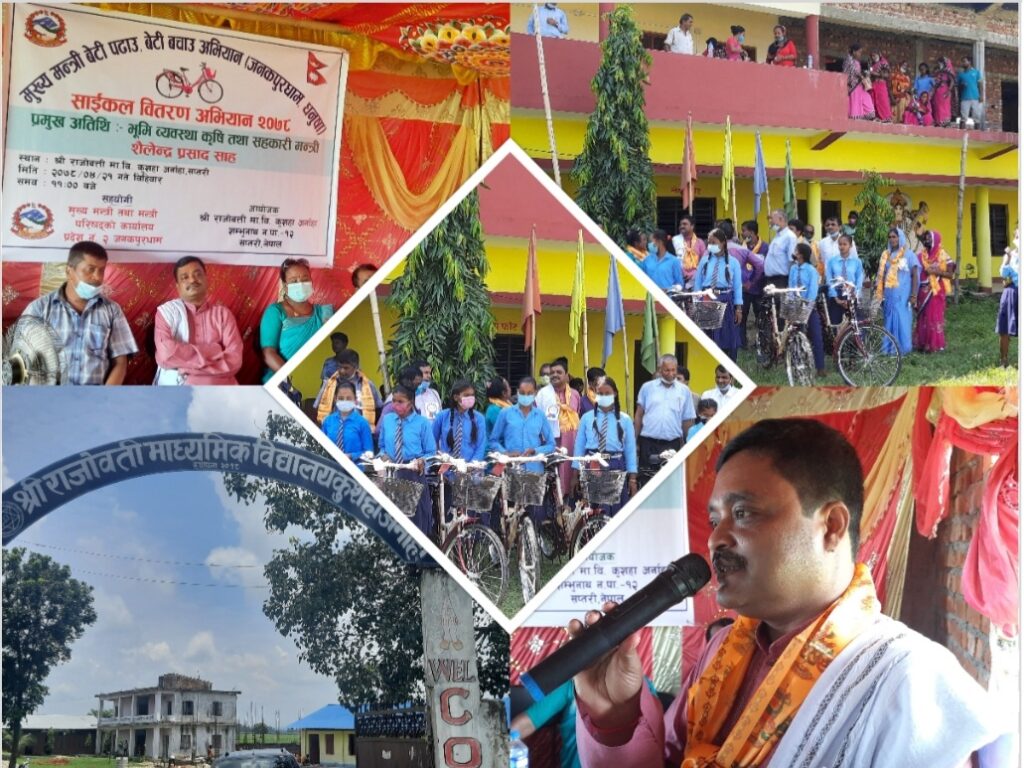 कक्षा ८ तह अध्यनरत श्री राजोवती माध्यमिक बिद्यालय कुशहा अर्नाहा सप्तरीमा ३४ जना छात्राहरुलाई  प्रदेश न. २ का भुमि व्यवस्था तथा कृषि सहकारी मन्त्रि मा. शैलेन्द्र प्रसाद साह ज्यूद्वारा  साइकल बितरण गरिएको छ।