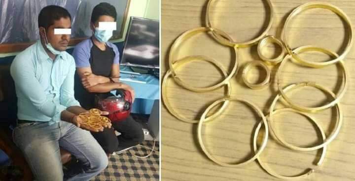 प्रहरीका अनुसार बिहीबार बिहान प्रहरीले सिरहा धनगढीमाई नगरपालिका ८ का २४ वर्षीय रिसब महतो र खोटाङ दिक्तेल रुपाकोट मझुवागढी नगरपालिका १३ का ४१ वर्षीय अम्बर चाम्लिङलाई सुनसहित पक्राउ गरिएको हो ।
