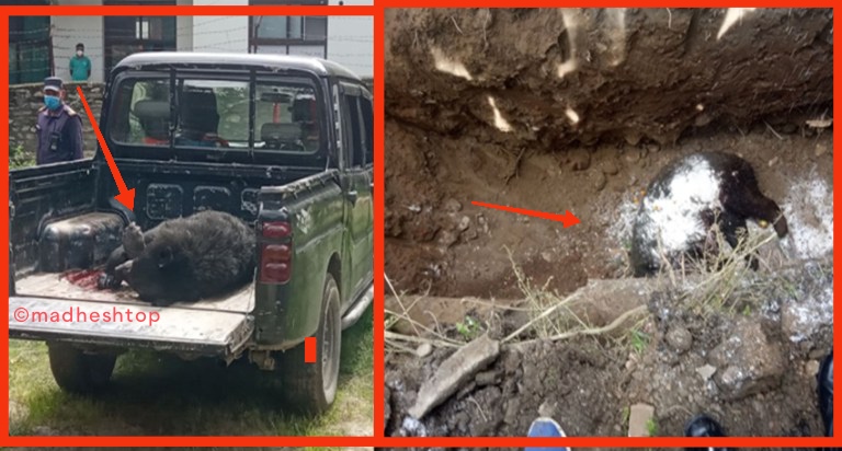 सशस्त्र प्रहरी, नेपाल प्रहरी र नेपाली सेना डिभिजन वन कार्यालयको सक्रियतामा मारिएको भालुलाई डिभिजन वन कार्यालयमा लिएर पशु प्राविधिकले मृत घोषित गरेका थिए। हिमाली भालुको लम्बाइ ५ फिट, उचाई ३ फिट, गोलाई चार फिट थियो। अगाडिको पञ्जाको लम्बाई ७ इन्च, चौडाई ५ इन्च थियो। पञ्जाका नंग्रा २० वटा थिए। भालुको तौल दुइ क्वीन्टल थियो। रातो कालो र छातिको भाग सेतो थियो। भालुलाई वन कार्यालय परिसरमा १० फिट गहिरो खा’ड’ल ख ‘नेर गा ‘डिएको थियो।