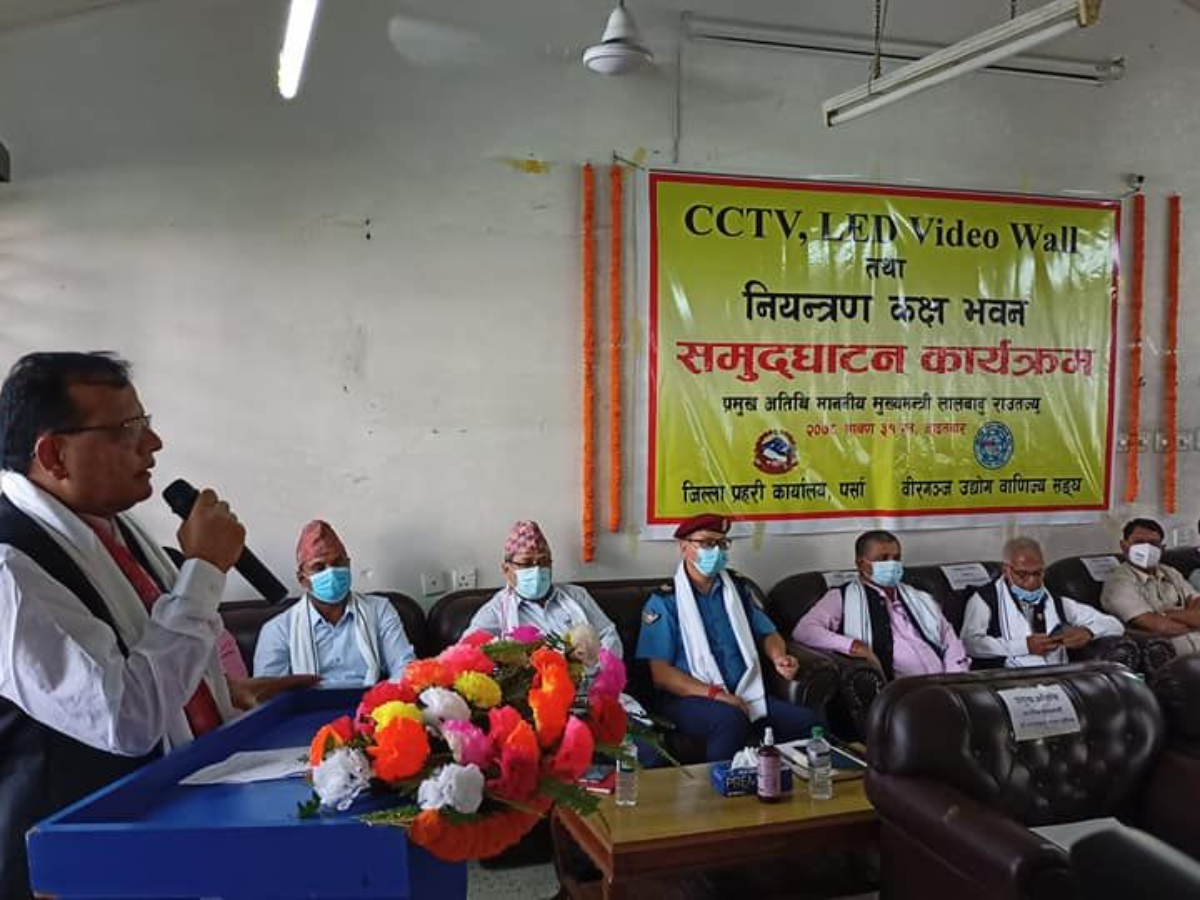पर्सा । प्रदेश नम्बर २ का मुख्यमन्त्री लालबाबु राउतले जिल्ला प्रहरी कार्यालय पर्सामा सीसीटीभी मोनिटरिङ कक्ष तथा एलईडी भिडियो वालको उद्घाटन गरेका छन् । जिल्ला प्रहरी कार्यालय पर्सा तथा वीरगञ्ज उद्योग वाणिज्य संघ पर्साको संयुक्त आयोजनामा गरिएको कार्यक्रममा मुख्यमन्त्री राउतले वीरगञ्जमा अपराधिक गतिविधि नियन्त्रणमा सीसीटीभी क्यामेराको भूमिका महत्वपूर्ण रहेको बताए ।