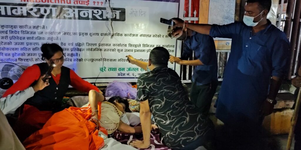 जनकपुरधाम :  डिभिजन वन कार्यालय सिरहा माथि छानवीन लगायत पाँच बुंदे मागसहित आमरण अनसनमा बसेका दुई जना मध्ये पर्सा निवासी रानी रायको स्वास्थ्य अवस्था बिग्रिदै गएको छ ।