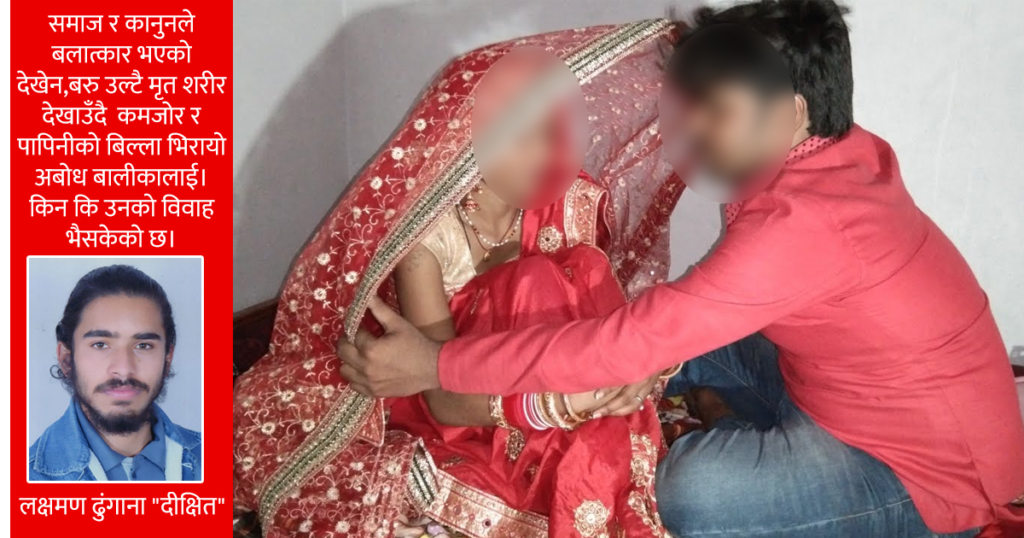 रमा बला त्कृत भइन् ।एक बालिकाको अस्मिता र जीवन बला त्कृत भयो। बला त्कार मात्र हैन धर्तिबाटै अस्तित्व लुटियो।यो अक्षम्य अप राध हो,महापाप हो तर समाज र कानुनले बला त्कार भएको देखेन,जीवन लुटेको देखेन,पाप गरेको देखेन,बरु उल्टै मृत शरीर देखाउँदै कमजोर र पापिनीको बिल्ला भिरायो अबोध बालीकालाई। किन कि उनको विवाह भैसकेको छ। विवाह भएकै कारण उनी बालिका भएर पनि बालिका भइनन्, बला त्कृत भएर पनि बला त्कृत भइनन्, ह त्या भएर पनि स्वाभाविक मृतक बनिन् कानुन र समाजकालागि ।