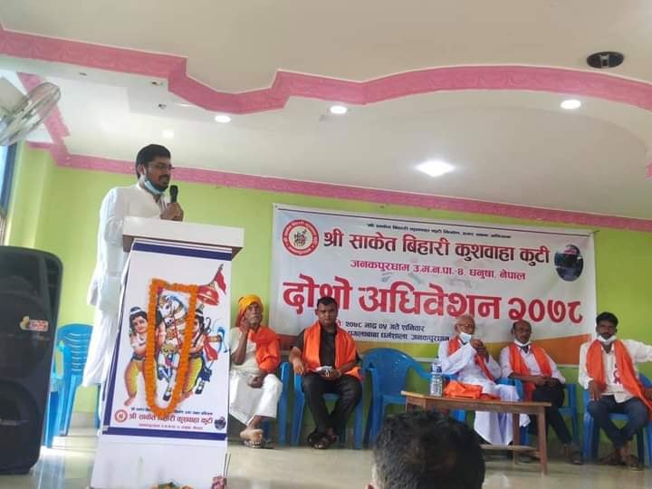 कुशवाहा जातिकाे थर एक हुनु पर्ने र दोस्रो अधिबेशनमा उपस्थिति हुनु भएको सम्पुर्ण कुशवाहा परिबारलाई धन्यवाद दिदै अधिबेशन सफलताको कामना समेत व्यक्त गर्नु भयो ।