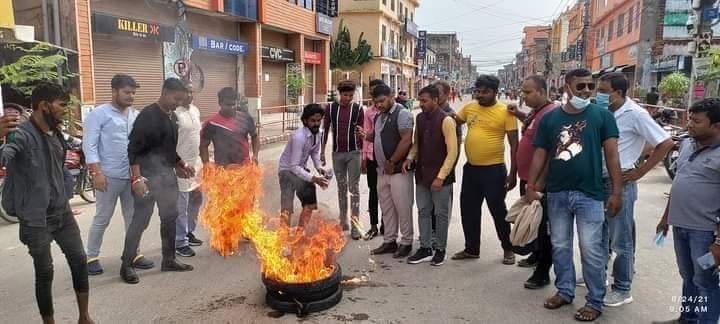 आज विहान जनकपुरको शिव चोकमा संघका कार्यकर्ताहरुले टायर बालेर मुल्यवृद्धि विरुद्ध प्रदर्शन गरेका हुन् । शेरबहादुर देउवा सरकारविरुद्ध नाराबाजी गर्दै संघका कार्यकर्ताहरुले मुल्यवृद्धि फिर्ता नलिए कडा आन्दोलन गर्ने चेतावनी दिएका छन् ।
