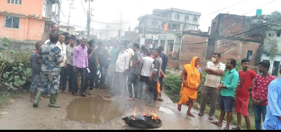 जनकपुरधाम :आज आइतबार उप माहा नगरपालिका का अती व्यस्त सडक रेल्वे स्टेशन पुल चौक देखि सहिद नगर पालिका जाने सडक ( यदुकाहा ) को अबस्था दैनिय भएको भन्दै स्थानीय द्वारा पुल चौकमा टायरबाली चक्का जाम गरेका छन ।