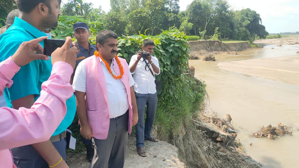 कार्यक्रममा सहभागी भएको बेला स्थानीय नेता तथा कार्यकर्ताले खोलामा आएको बाढीले उब्जाउ जमिन कटान गरिरहेको विषयमा बताएपछि मन्त्री साह खोला पुगेका थिए ।