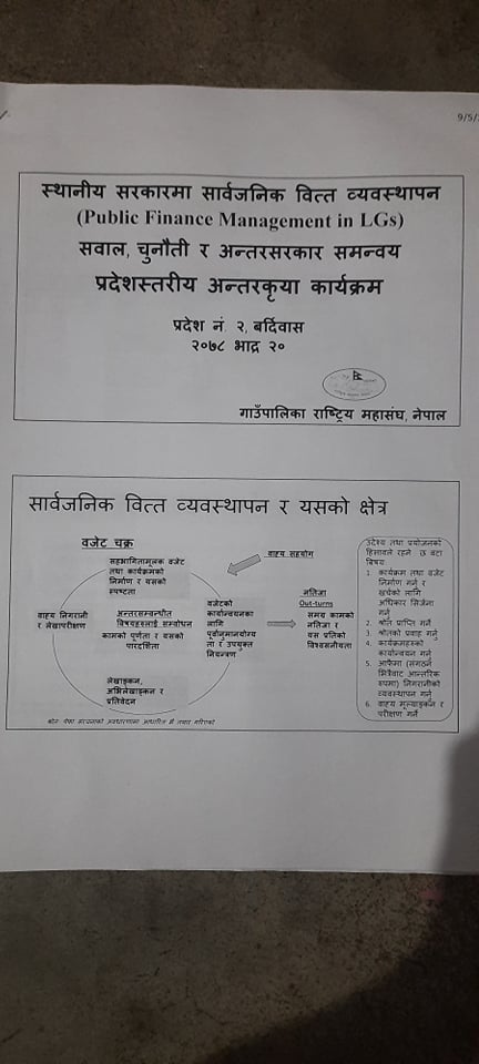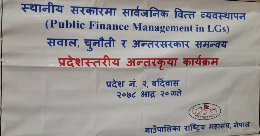 गाउँपालिका राष्ट्रीय महासंघ, नेपालद्वारा स्थानीय सरकारमा सार्वजनिक वित्त ब्यवस्थापनको सवाल, चुनौती र अन्तरसरकार समन्वय विषयक अन्तरकृया कार्यक्रम ।