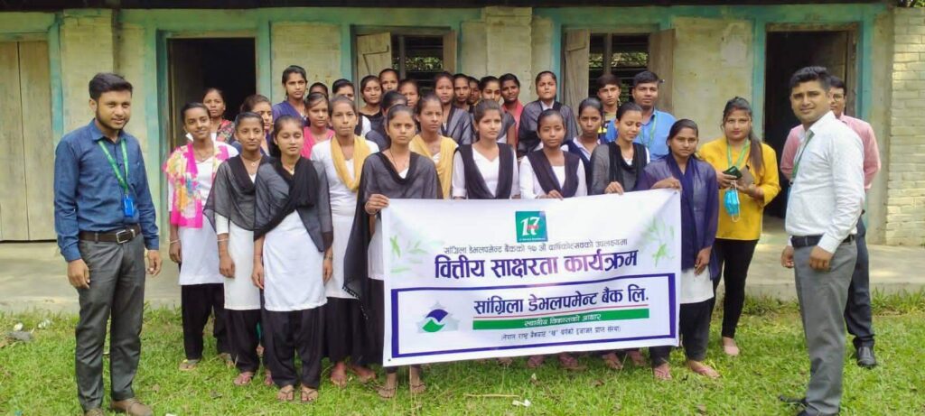 लहान। कार्तिक ९ गते। सिराहाको लहानमा अवस्थित सांग्रिला डेभलपमेन्ट बैंक लिमिटेड लहान शाखाले आज मंगलबार १७ औं वार्षिकोत्सव अवसर पारेर वित्तीय साक्षरता कार्यक्रम सम्पन्न गरेको छ।