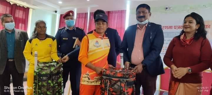 रौतहट जिल्लामा प्रथम पटक राष्ट्रिय क्रिकेट प्रतियोगितामा सहभागी भएकाे दुई खेलाडीलाई खेल सामग्री र नगद सहित सम्मानित गर्नु भएको हो ।