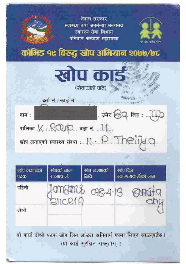 त्यसैगरी निमित्त कार्यालय प्रमुख भोला यादवले कुनै पनि साथी दुई/चार पैसाको लोभमा त्यस्तो काम गरिरहनुभएको छ, त्यो वास्तवमै गलत र जोखिमपूणर् काम हो । साथै त्यस्तो गरी खोप नलिईकनै कार्ड बनाउने सेवाग्राही पनि जोखिम मोल लिइरहेकोले त्यस्तो कृयाकलाप नगर्न/नगराउन सबैलाई आग्रह गर्नुभयो ।