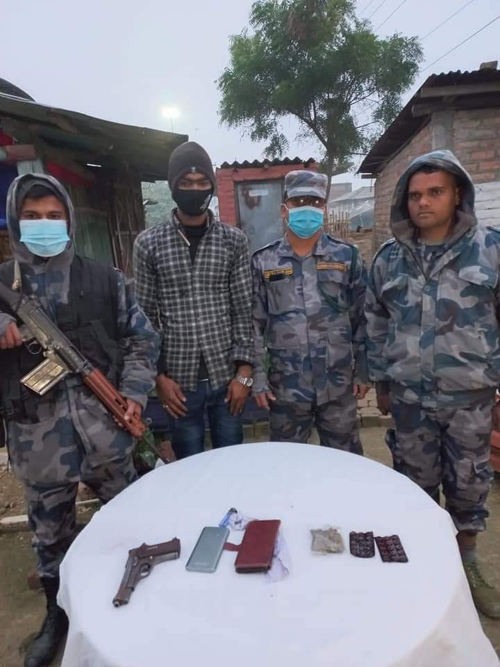 जिल्लाकाे लाेहारपट्टी नगर पालिका ९ पिपरादी बस्ने माेहम्मद राजा कवाडीकाे साथबाट युएस मेड लेखिएकोनाै एम एमकाे पेस्तोल एक थान सहित लागुअाैषध नाइट्रामिट १० पिस समेत बरामद गरि अावश्यक कारवाहीकाे लागि नेपाल प्रहरीलाई बुझाएको सशस्त्र प्रहरीकाे दुई नम्बर बाहिनीले जानकारी दिएको छ।