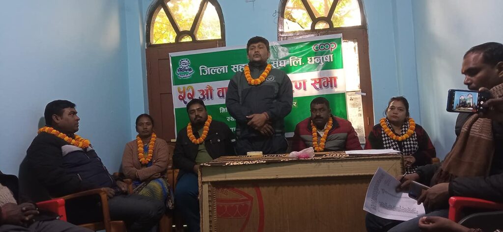 जनकपुरधाम । जिल्ला सहकारी संघ लिमिटेड, धनुषाको ५२ औं वार्षिक साधारण सभा जनकपुरमा सम्पन्न भएको छ । संघका अध्यक्ष राम बाबु यादवको अध्यक्षतामा उद्घाटन गरिएको सभामा सहभागिहरुले सहकारी मार्फत नै सर्वसाधारणको जिविको परिवर्तन हुनेमा जोड दिए ।