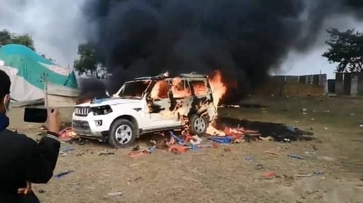 खेसरीलाल नपुगेपछि आक्रोशित भीडले स्टेज तोडफोड गर्दै चारवटा स्करपिओमा आगजनी गरेको प्रहरीले जनाएको छ । तोडफोड र आगजनीपछि बर्जु क्षेत्रको मंगलबार दिउँसो तनावग्रस्त बनेको बर्जु गाउँपालिका– ६ का वडाध्यक्ष विनोदकुमार चौधरीले बताए ।