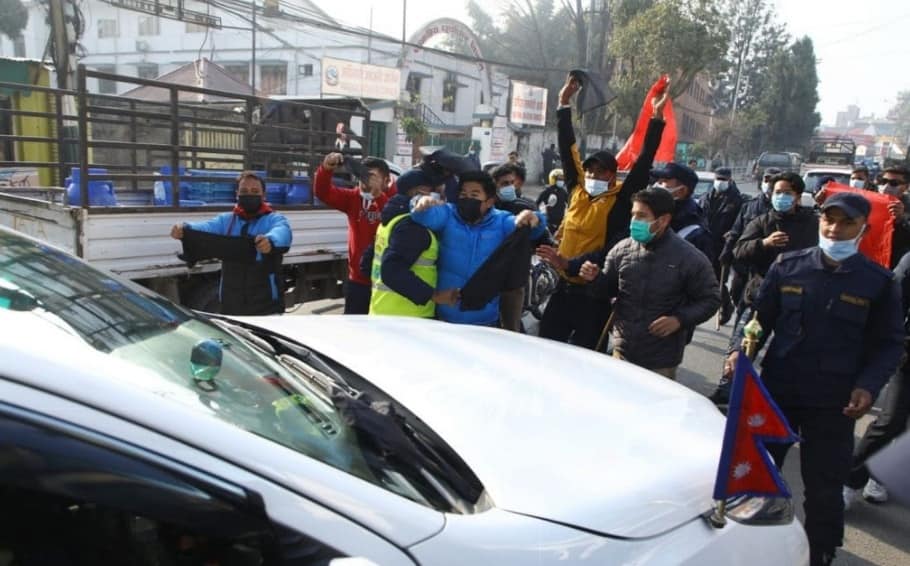 मंगलबार बिहान अनेरास्ववियूले पुल्चोकस्थित मन्त्री क्वार्टरअगाडि प्रदर्शन गर्ने क्रममा सञ्चारमन्त्री कार्की चढेको गाडीको बाटो छेकेर कालो झण्डा देखाएका हुन् ।  उनीहरुले स्थानीय तह निर्वाचनको मिति तत्काल घोषणा गर्न सरकारसँग माग गरेका छन् ।