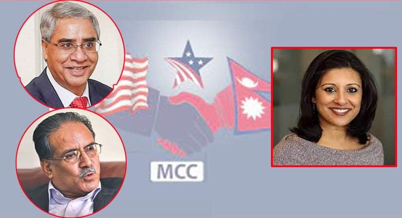 काठमाडौं । प्रधानमन्त्री शेरबहादुर देउवा र नेकपा माओवादी केन्द्रका अध्यक्ष पुष्पकमल दाहाल प्रचण्डले संयुक्त रुपमा पत्र लेखी १६ फागुनभित्र एमसीसी पारित गर्ने प्रतिबद्धता जनाएकोमा अमेरिकी सहयोग नियोग मुख्यालयले धन्यबाद ज्ञापन गरेकाे छ ।
