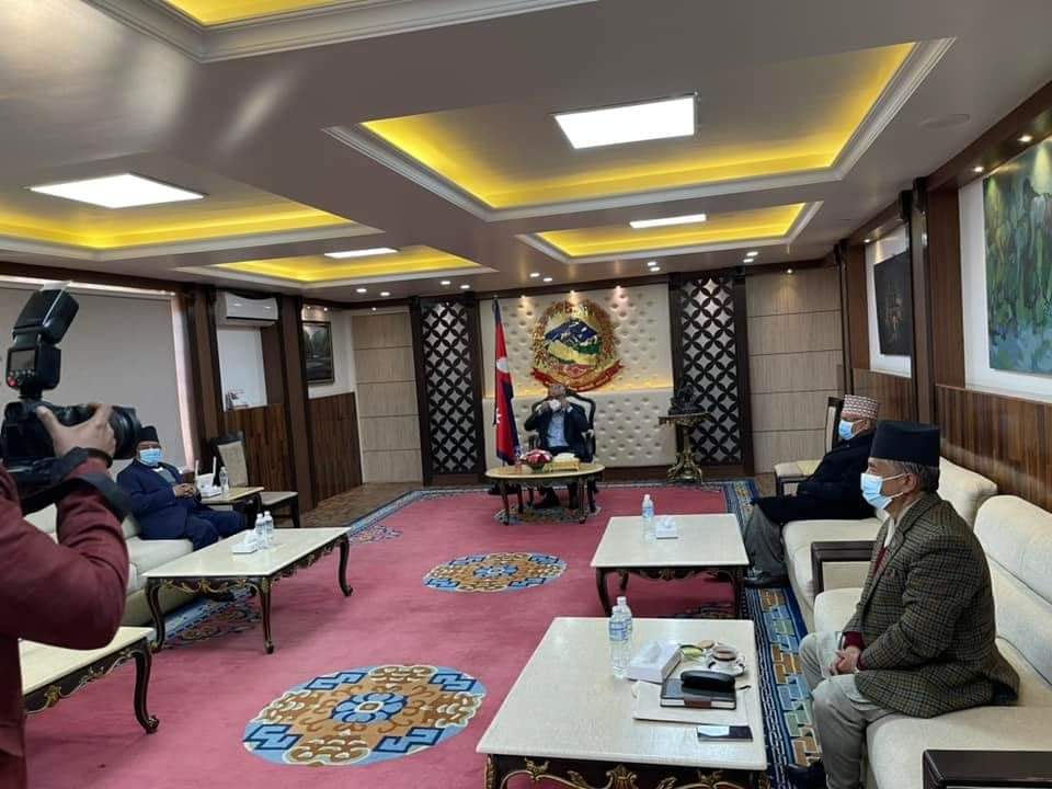 बैक्ठकमा प्रधानमन्त्रीसमेत रहेका नेपाली कांग्रेसका सभापति शेरबहादुर देउवा, माओवादी केन्द्रका अध्यक्ष पुष्पकमल दाहाल प्रचण्डका साथै प्रमुख प्रतिपक्षी एमाले अध्यक्ष केपी शर्मा ओली बीचको बैठक सकिएको हो ।