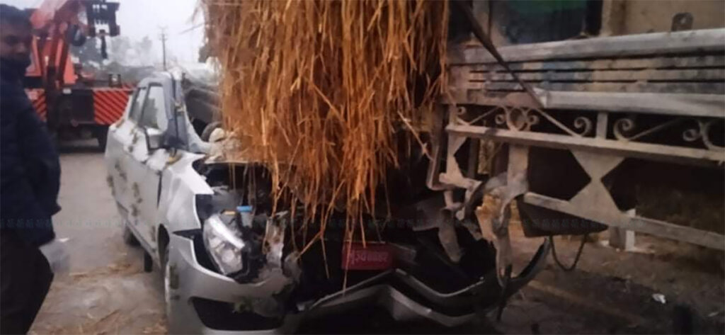 पराल बोकेर पश्चिमबाट बुटवलतर्फ आउँदै गरेको ना २ ख ९७७२ नम्बरको ट्रक सडकमा रोकिरहेको बेला सोही ट्रकसँग लु ३ च ४४४२ नम्बरको कार ठोकिएको प्रहरीको भनाइ छ।