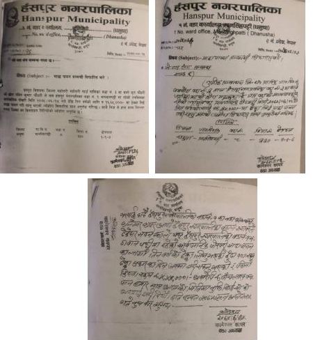 हंसपुरपुर नगरपालिका वडा नं। १ का वडा अध्यक्ष कामेश्वर कापरले भगवानपट्टी स्थित सार्वजनिक पोखरी ठेक्काको ११ लाख १० हजार आम्दनि नगरपालिकामा दाखिला नगरेको प्रशासकिय अधिकृत केशव कुमार अधिकारीले बताए ।