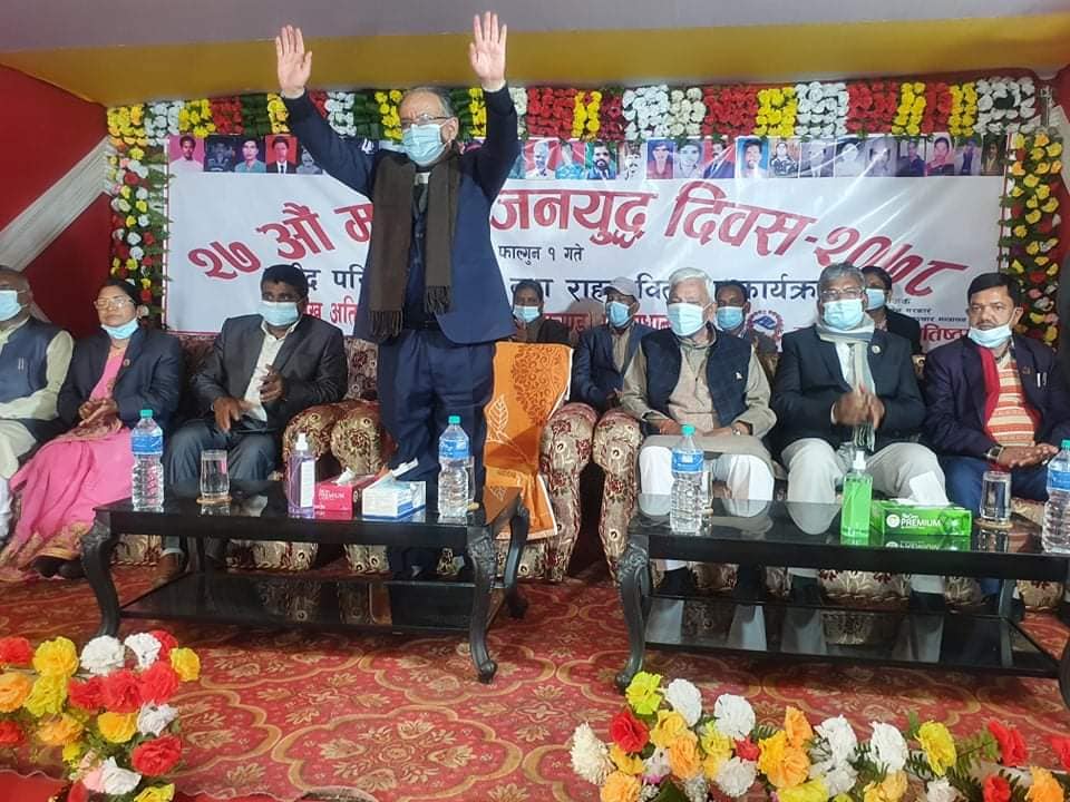 जनकपुरमा आयोजित ‘जनयुद्ध दिवस’ कार्यक्रमलाई सम्बोधन गर्दै अध्यक्ष दाहालले अहिले पनि परिवर्तनलाई उल्ट्याउने षडयन्त्र भइरहेको बताए। अहिले प्राप्त भएका परिवर्तनलाई जोगाउन सबै एकजुट हुनुपर्ने उनको भनाइ थियो।