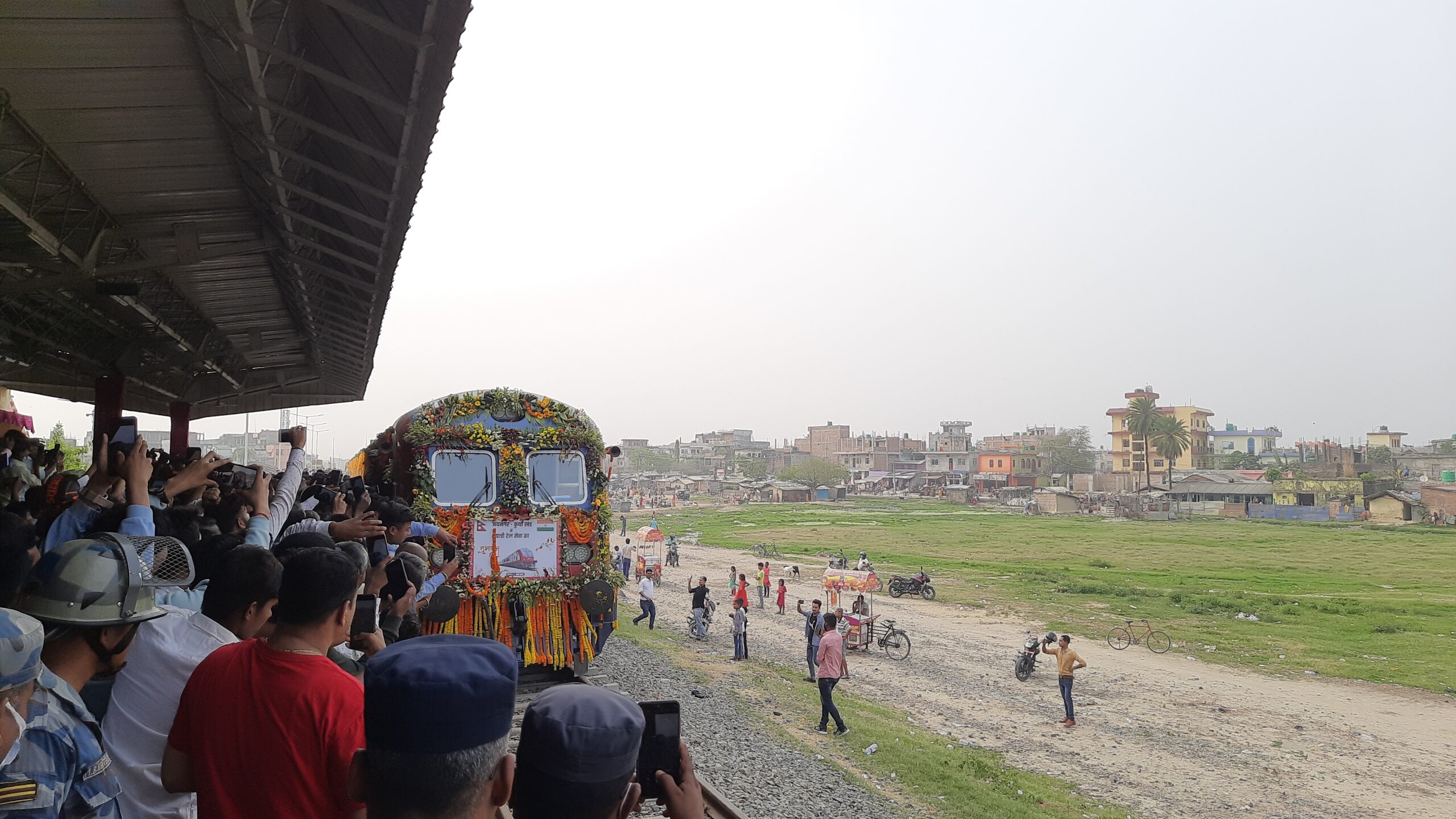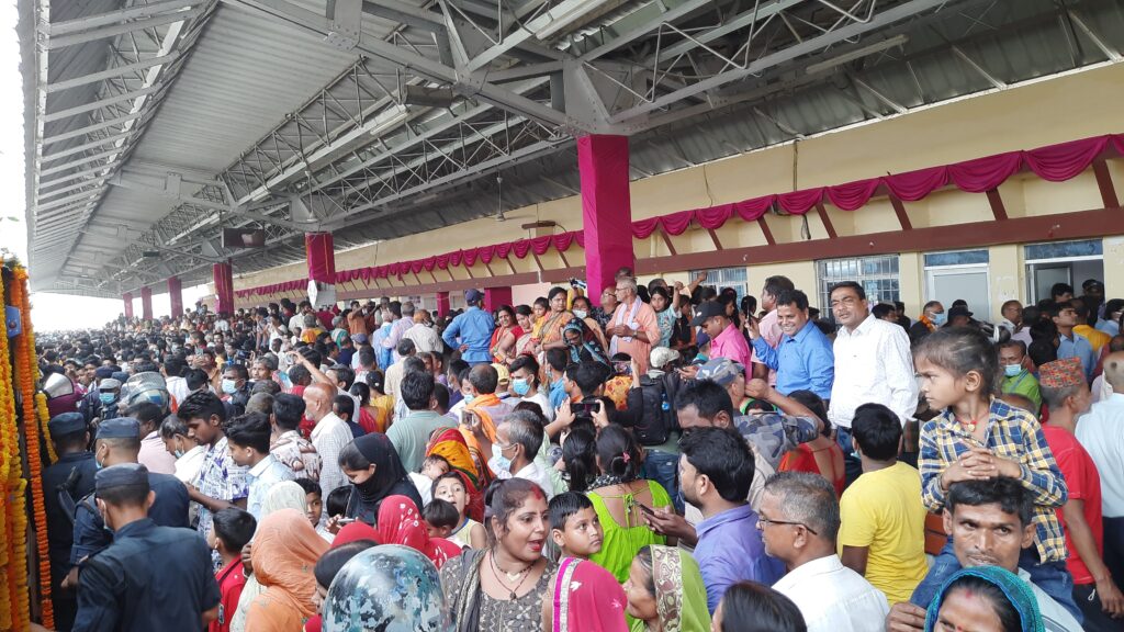 शनिबार जनकपुरधाम स्टेसनमा रेल आइपुग्दा विभिन्न क्षेत्रका व्यक्ति, विद्यार्थीलगायत उपस्थितले भव्य स्वागत गरे । त्यसक्रममा ठूलो भिड लागेको थियो ।