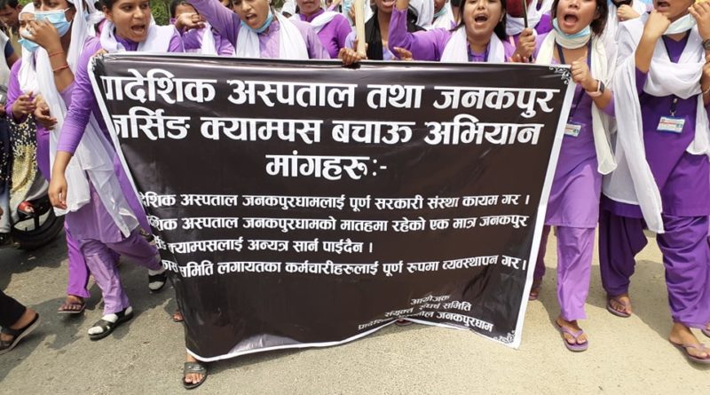 जनकपुरधाम : जनकपुरधाम स्थित रहेको प्रादेशिक अस्पताललाई मधेश स्वास्थ्य विज्ञान प्रतिष्ठानमा राखेपछि स्वास्थ्यकर्मीहरु आन्दोलित भएका छन् ।