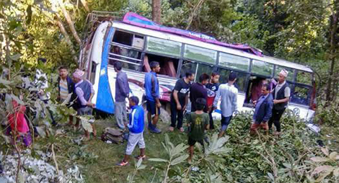 पारिश्रमिक सहकारी संस्था मोरङबाट भ्रमणको लागी प्युठान पुगेर मोरङतर्फ फर्कंदै गर्दा प्रदेश ३–०१–००५ ख ९८६० नम्बरको बस आज बिहान पौने ४ बजे दुर्घटनामा परेको थियो ।