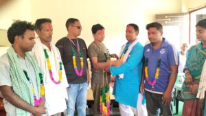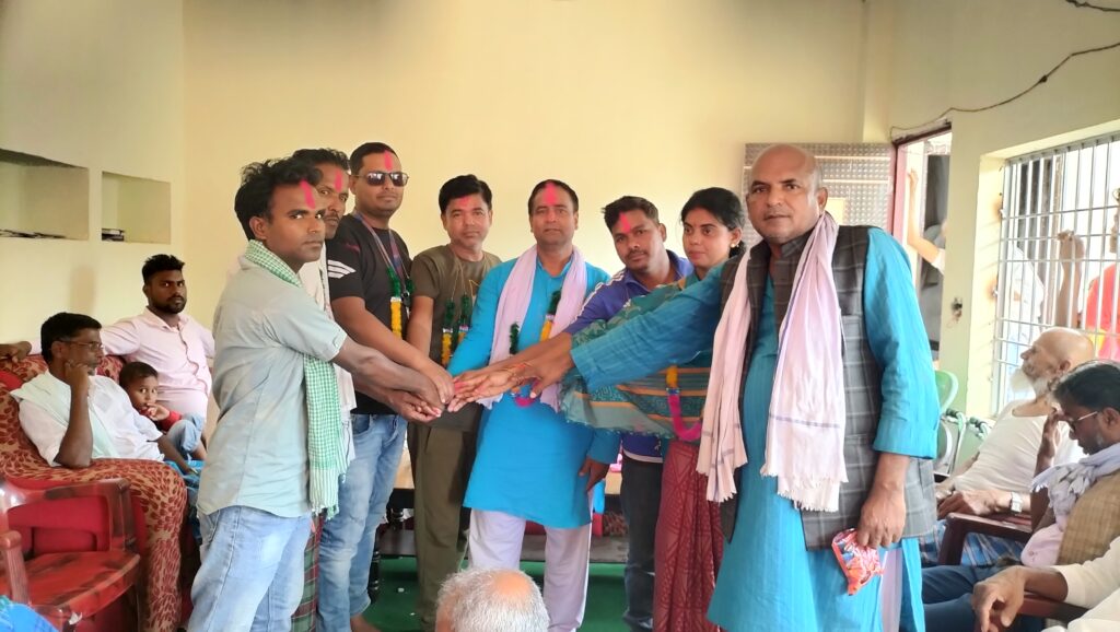 नव प्रवेश गरेकालाई नगर अध्यक्ष अमरेन्द्र प्रसाद यादवले टीका , माला लगाई पार्टी प्रवेश गराउनु भएको हो