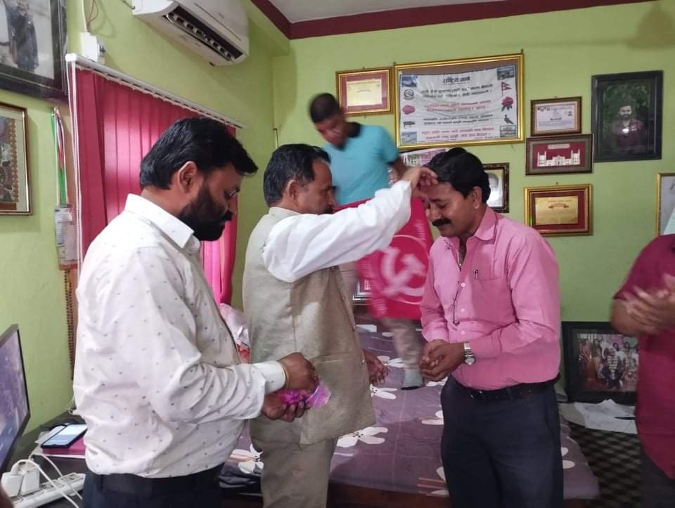नेता चौधरीलाई नेता बरबरियाद्धयले अबिर माला लगाएर पार्टीमा स्वागत गरेका छन् ।
